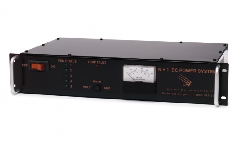 Esta fonte de alimentação CA / CC modular de 19 ″ para montagem em rack pode fornecer até 60 Amperes de energia contínua. A tensão DC de saída é altamente regulada em 13,8 Volts (210-250 Volts, entrada 50 Hz CA). A potência de saída pode ser expandida em incrementos de 20 amperes (até 100 amperes no máximo). Uma bateria externa pode ser conectada para backup e uma seção da corrente de saída (até 8 amperes) é desviada para carregar as baterias quando em um estado de descarga, usando o módulo de backup de bateria embutido. A bateria fornece a carga CC quando ocorre perda de energia da rede elétrica. Os recursos incluem redundância N + 1, display analógico volt / amperímetro do painel frontal, monitoramento remoto e indicação por conector D-sub de 25 pinos, aviso de falha do ventilador e indicação de alarme.