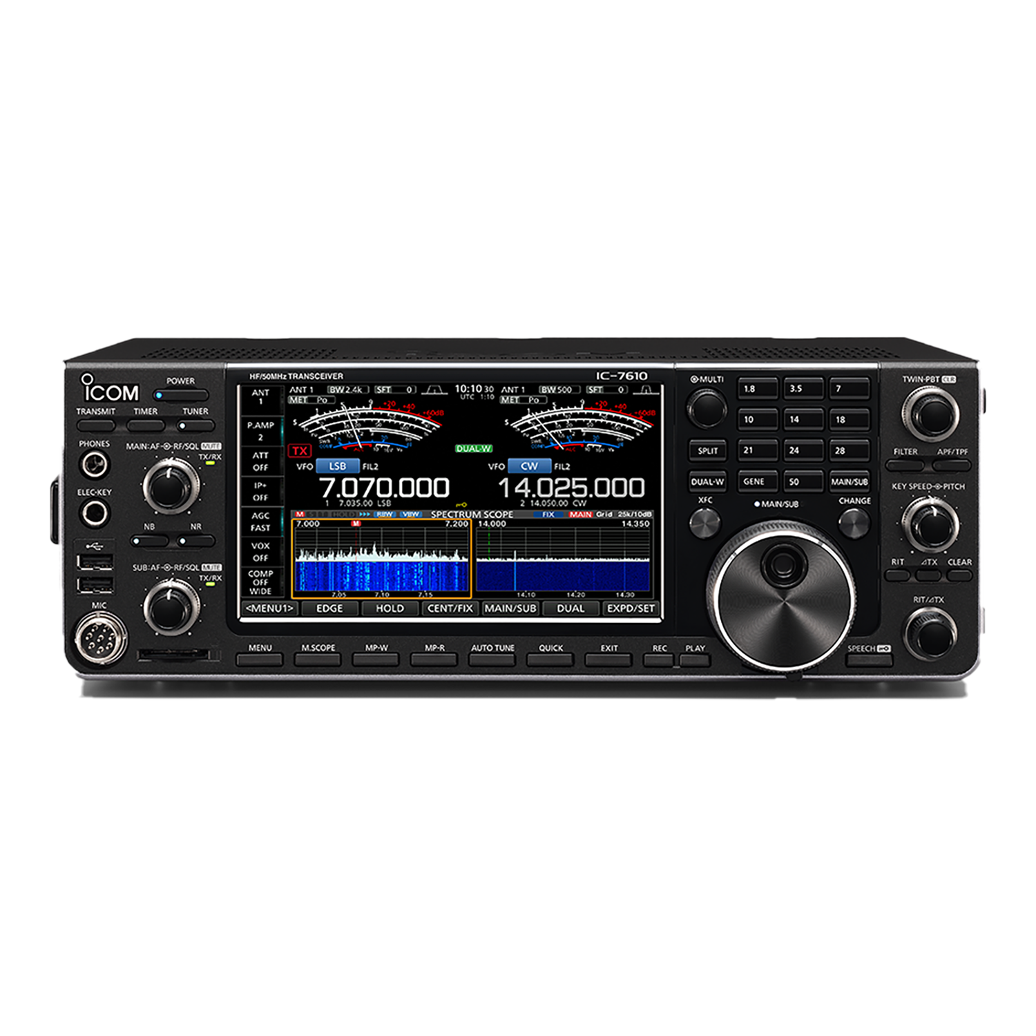 O IC-7610 apresenta dois receptores de amostragem direta por RF, atingindo 110dB RMDR, rivalizando com o dos transceptores topo de linha.