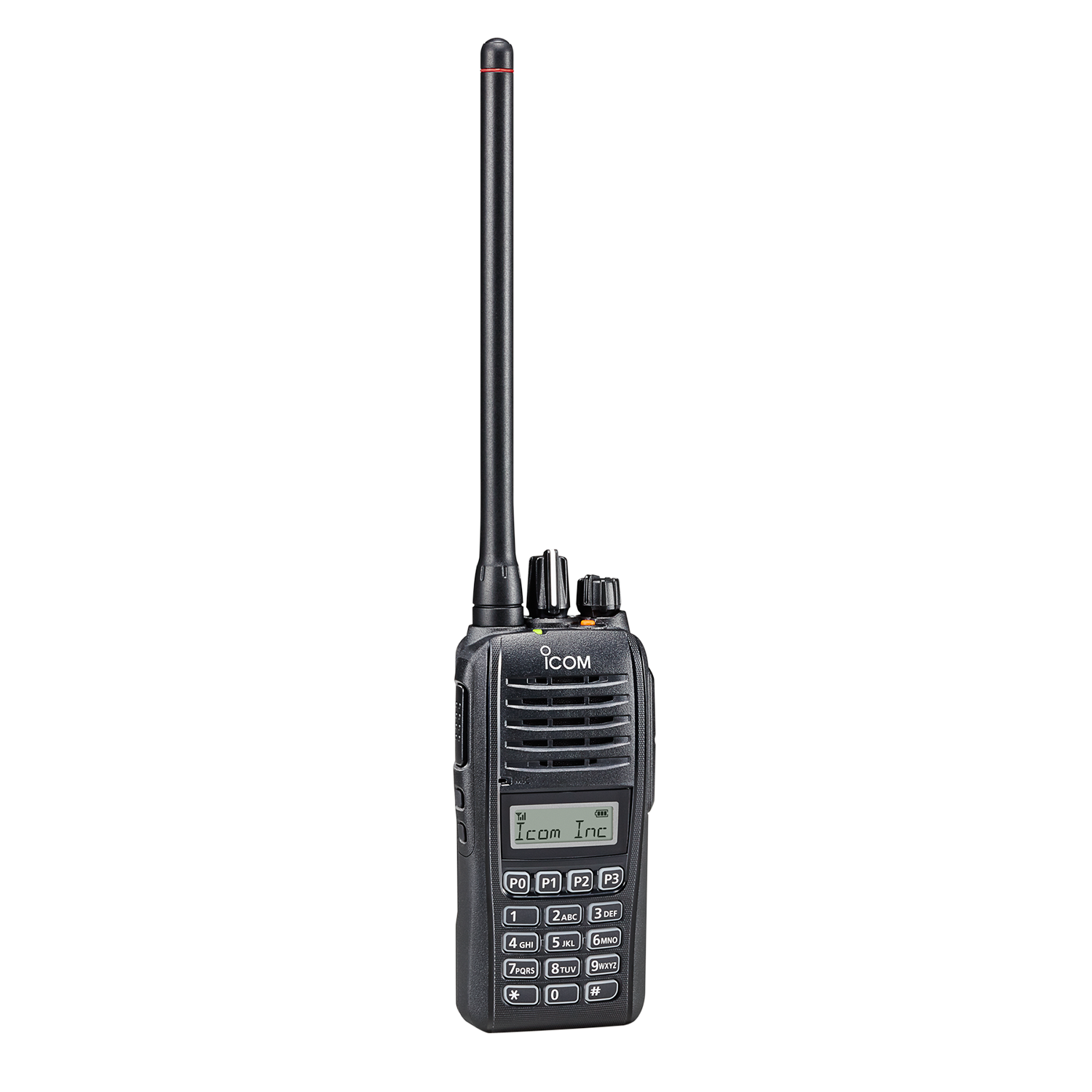 Portátil VHF da marca ICOM com 128 canais/8 zonas, teclado, satisfazendo as normas IP67 e MIL-STD-810_G.