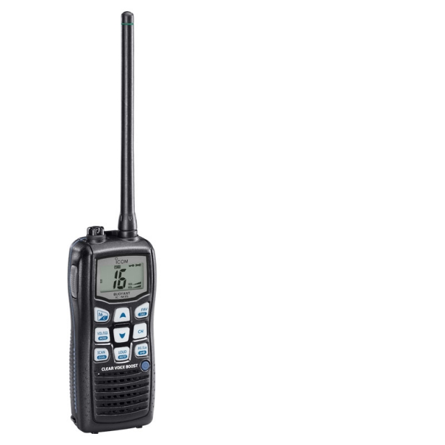 Dando continuidade á série do IC-M33, o IC-M35 flutua para que possa recuperá-lo e nunca o perder no mar. O IC-M35 flutua mesmo quando o microfone opcional, HM-165 está conectado.