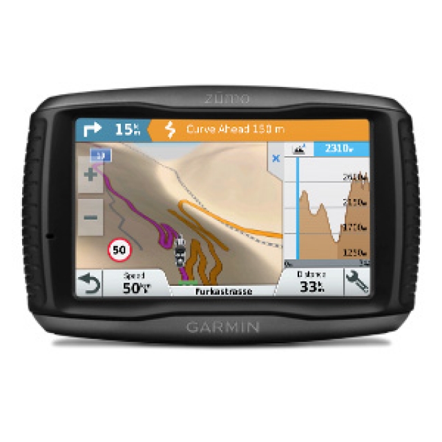 Com opções Garmin Adventurous Routing™ para aqueles percursos sinuosos, inclinados, junto ao solo de que gosta, o zūmo 595LM é o equipamento de navegação para motociclos “criado para as emoções.” O seu ecrã tátil é grande, pode ser utilizado com luvas, tem 5 polegadas de alta resolução e pode ser visualizado em modo horizontal ou vertical. A tecnologia de ecrã transfletivo reduz o reflexo da luz e facilita a sua leitura, mesmo sob muita luz solar.